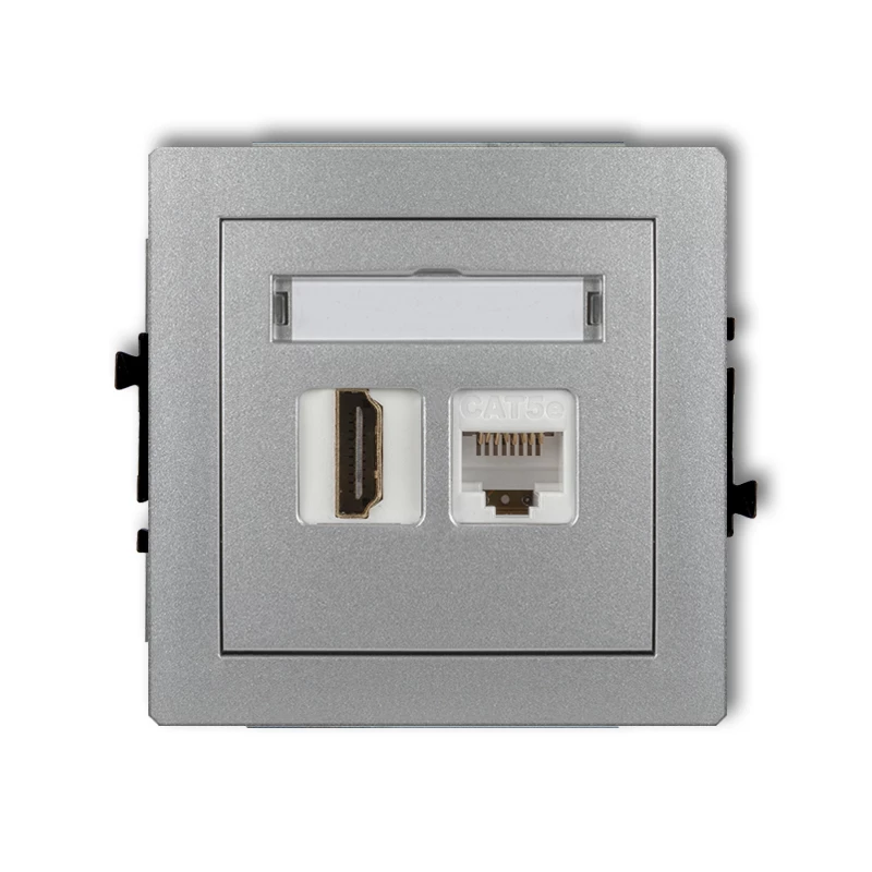 DECO Gniazdo pojedyncze HDMI + Gniazdo komputerowe pojedyncze 1xRJ45, kat. 5e, 8-stykowy srebrny metalik 7DGHK
