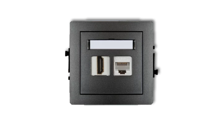 DECO Gniazdo pojedyncze HDMI + Gniazdo komputerowe pojedyncze 1xRJ45, kat. 5e, 8-stykowy grafitowy 11DGHK