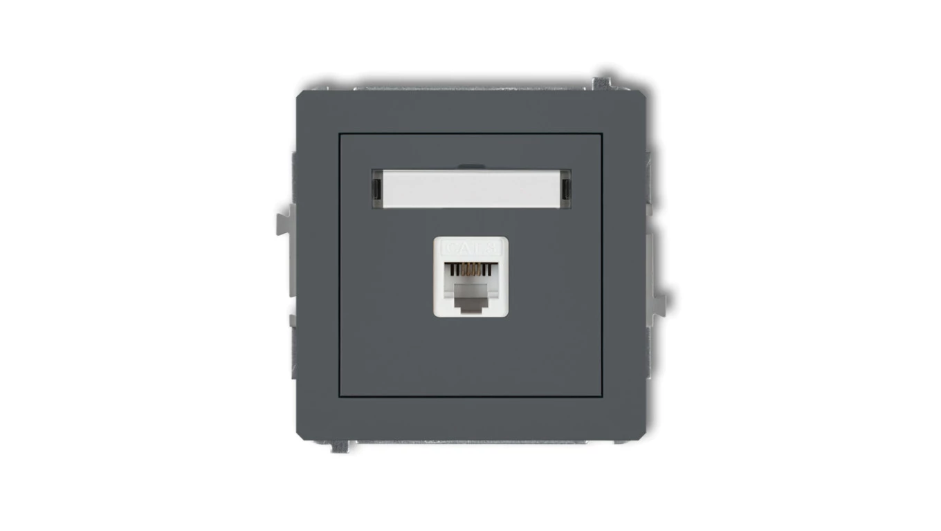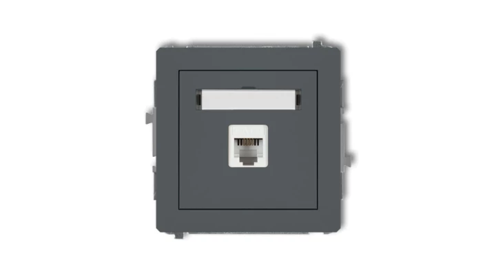 DECO Gniazdo telefoniczne pojedyncze 1xRJ11, 4-stykowy, beznarzędziowe grafitowy mat 28DGT-1