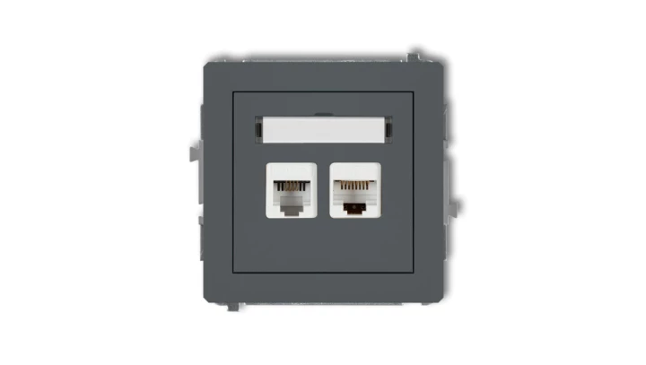 DECO Gniazdo telefoniczne pojedyncze 1xRJ11 + komputerowego pojedyncze 1xRJ45, kat. 5e, 8-stykowy, beznarzędziowe grafitowy mat
