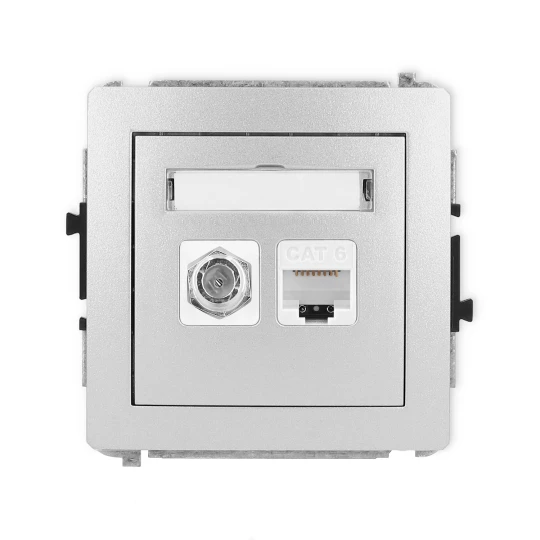 DECO Mechanizm gniazda antenowego poj. typu F (SAT) + gniazda komp. poj. 1xRJ45, kat. 6, 8-stykowy srebrny metalik 7DGFK-3
