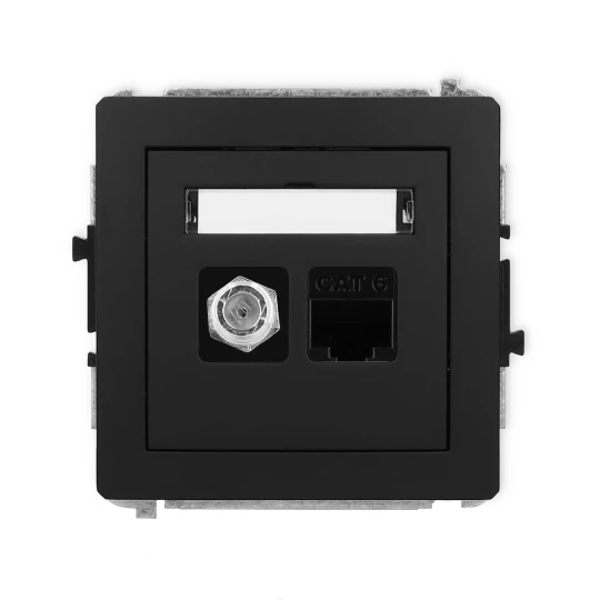 DECO Mechanizm gniazda antenowego poj. typu F (SAT) + gniazda komp. poj. 1xRJ45, kat. 6, 8-stykowy czarny mat 12DGFK-3