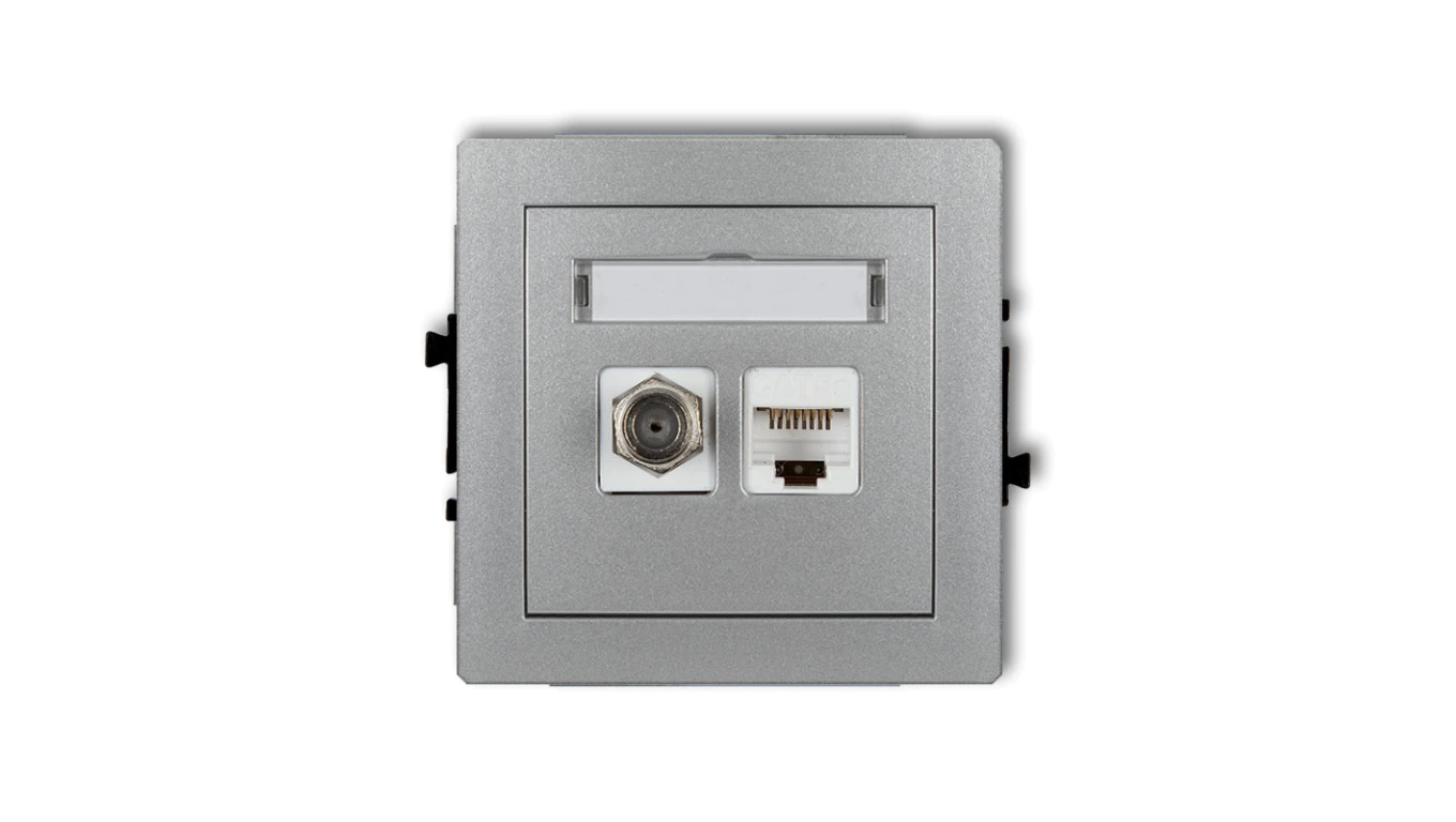DECO Mechanizm gniazda antenowego poj. typu F (SAT) + gniazda komp. poj. 1xRJ45, kat. 6 ekranowane, 8-stykowy srebrny metalik 7D