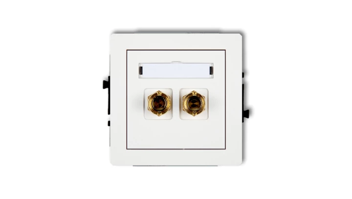 DECO Mechanizm gniazda głośnikowego pojedynczego (typu banan - czerwony i czarny, pozłacany, 4 mm2, skręcany), biały mat 25DGG-4