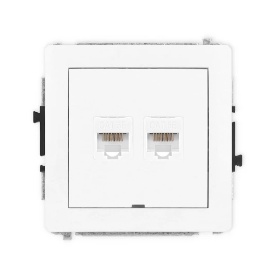 DECO Mechanizm gniazda komputerowego podwójnego 2xRJ45, kat. 5e, 8-stykowy, bez pola opisowego, biały mat 25DGKBO-2