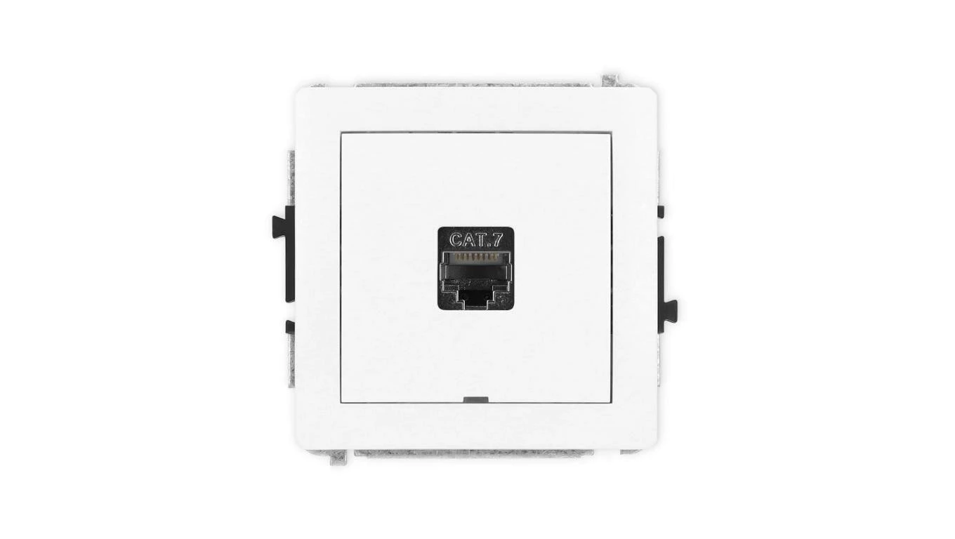 DECO Mechanizm gniazda komputerowego pojedynczego 1xRJ45, kat. 7, ekranowane, 8-stykowy, bez pola opisowego, biały mat 25DGKBO-9