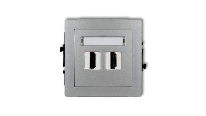 DECO Mechanizm gniazda podwójnego HDMI 2.0 srebrny metalik 7DHDMI-4