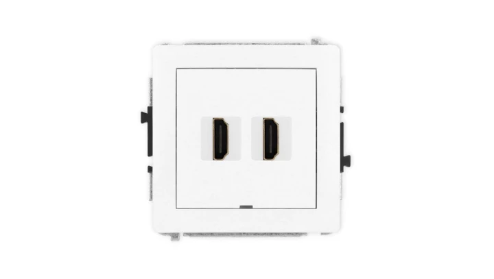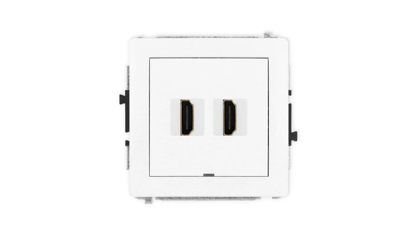 DECO Mechanizm gniazda podwójnego HDMI 2.1, 8K, bez pola opisowego biały mat 25DHDMIBO-6