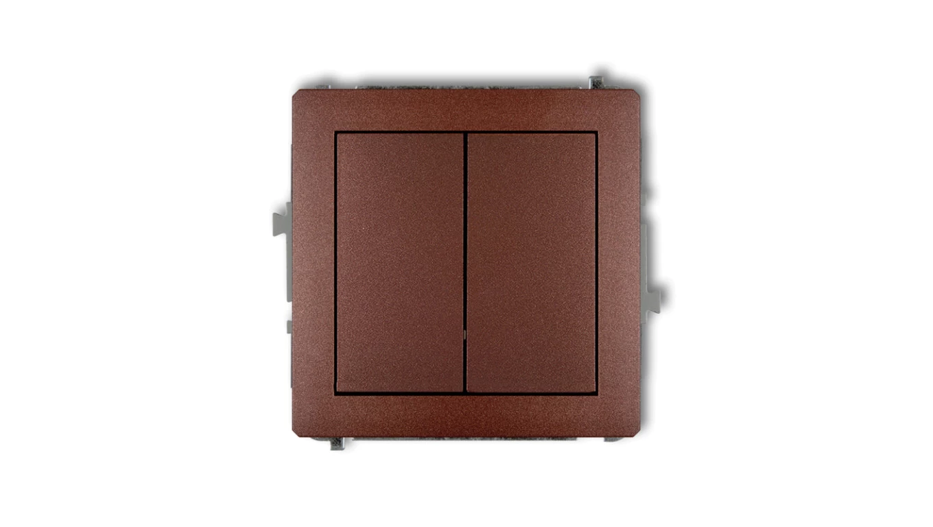 DECO Mechanizm łącznika jednobiegunowego ze schodowym (dwa klawisze bez piktogramów, osobne zasilanie) brązowy metalik 9DWP-10.2
