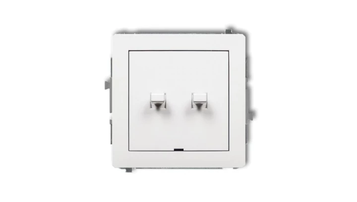 DECO Mechanizm łącznika jednobiegunowego ze schodowym w stylu amerykańskim (dwa klawisze bez piktogramów, osobne zasilanie), bia