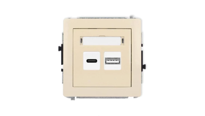 DECO Mechanizm ładowarki USB podwójnej USB C + USB A, 20W max., beżowy 1DCUSB-8