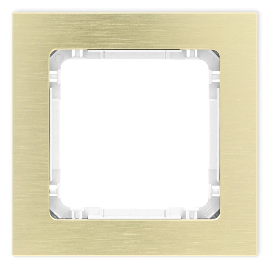 DECO Ramka uniwersalna pojedyncza - aluminium szczotkowane (ramka: kolor mosiężny spód: biały) 8-0-DRA-1