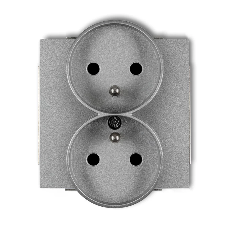 DECO Soft Gniazdo podwójne z/u do ramki srebrny metalik 7DGPRSO-2zp