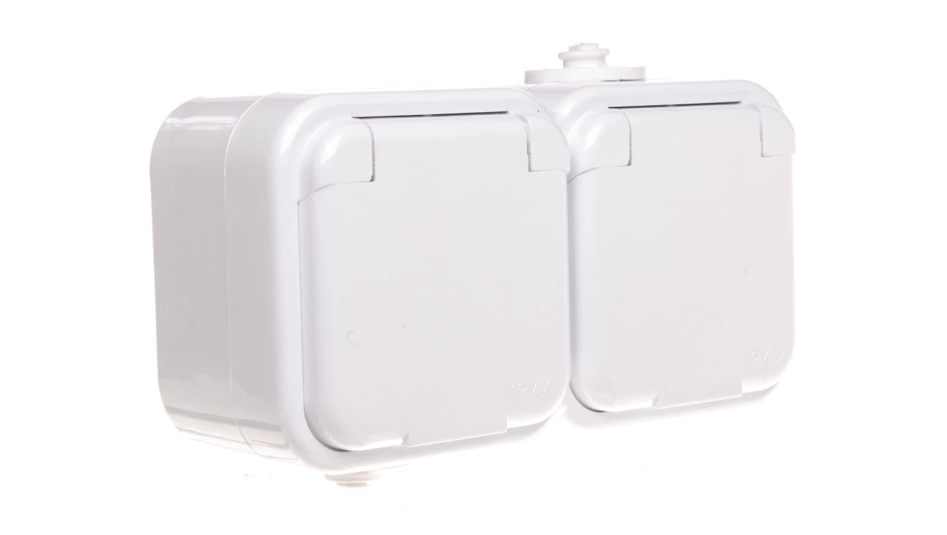 HYDRO Gniazdo hermetyczne podwójne z/u IP44 z klapką białe 120436
