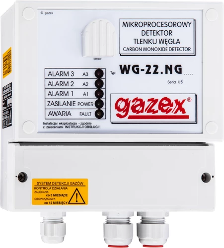 Detektor tlenku węgla WG-22.NG CO, 20/100ppm (s15), sensor p-p, zasilanie 230V, do garaży o numerze katalogowym WG-22.NG w kategorii Detektory gazów stacjonarne, Detektory gazów. Produkt wyprodukowany przez markę GAZEX, seria WG.NG.