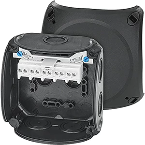 DK 0404 B - PUSZKA INSTALACYJNA 104X104X70 IP66, Z DŁAWNIC. MEMBRAN, Z ZACISKAMI CZARNA
