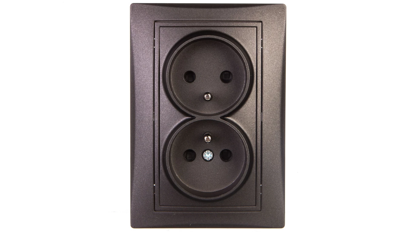 DOMO 01-1260-141 GR GNIAZDO ZASILAJĄCE PODWÓJNE FRANCUSKIE, KOMPLETNE Z OCHRONĄ STYKÓW
