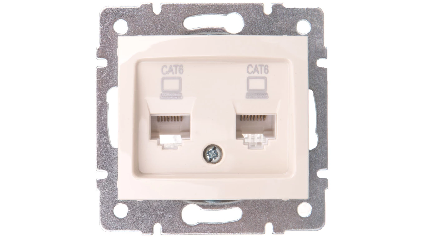 DOMO Gniazdo komputerowe podwójne niezależne 2x RJ45Cat 6 Jack kremowe 011420003 24815