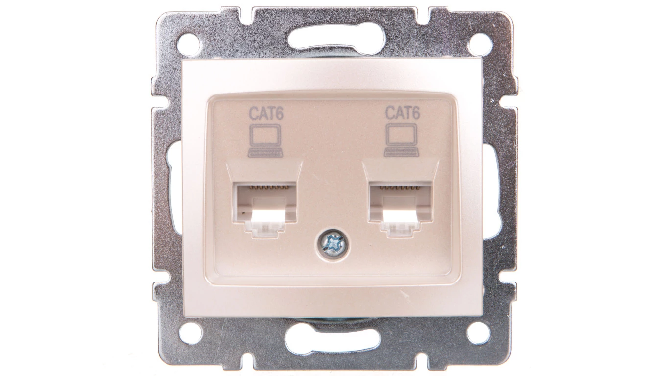 DOMO Gniazdo komputerowe podwójne niezależne 2x RJ45Cat 6 Jack perłowe białe 011420030 24992