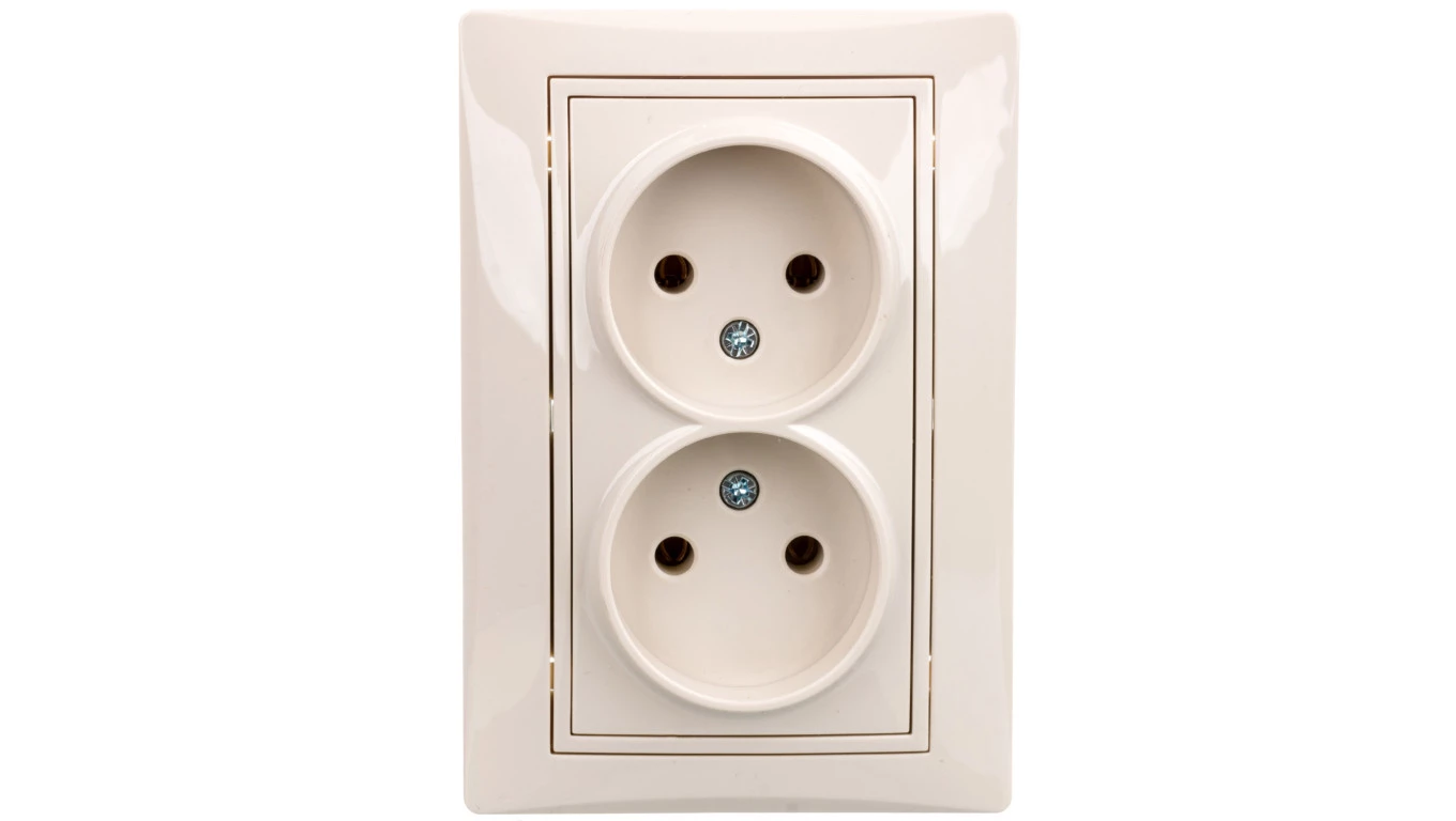 DOMO Gniazdo podwójne bez uziemienia kompletne śrubowe 16A 250V kremowy 011280103 24800