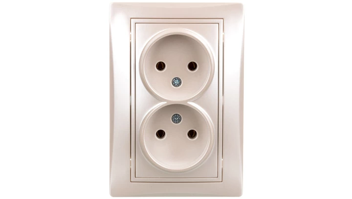 DOMO Gniazdo podwójne bez uziemienia kompletne śrubowe 16A 250V perłowy biały 011280130 24977