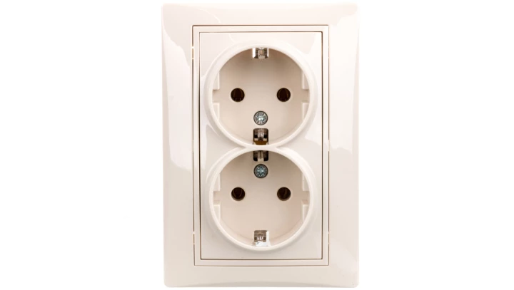 DOMO Gniazdo podwójne Schuko kompletne śrubowe 16A 250V kremowy 011270103 24799