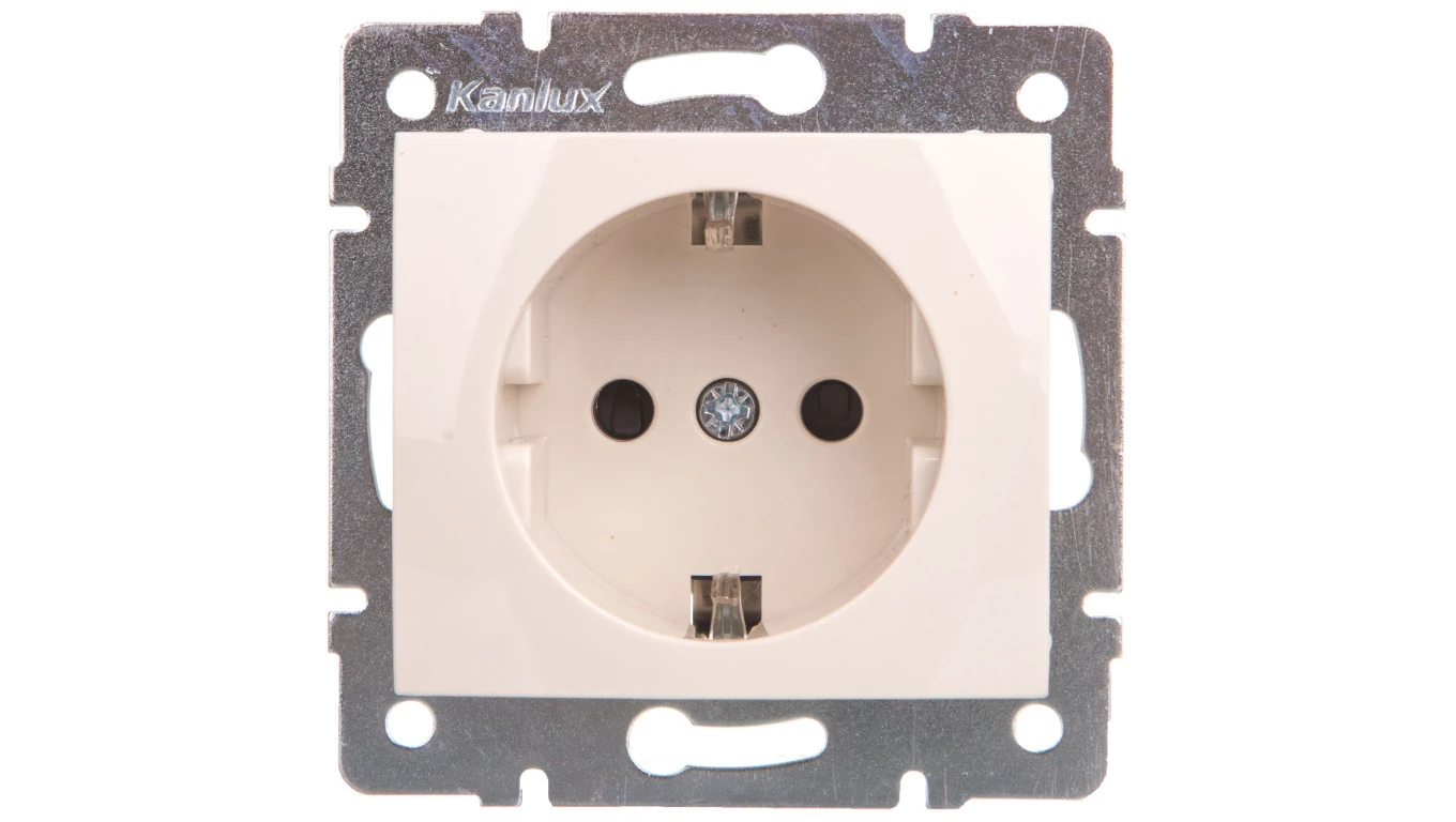 DOMO Gniazdo pojedyncze Schuko ochrona styków śrubowe 16A 250V kremowy 011240103 24793