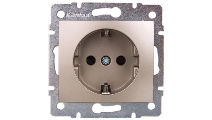 DOMO Gniazdo pojedyncze Schuko ochrona styków śrubowe 16A 250V szampański 011240150 25029