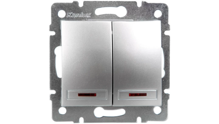 DOMO Łącznik dwugrupowy świecznikowy z LED szybkozłączka 10AX 250V srebrny 011120243 24843