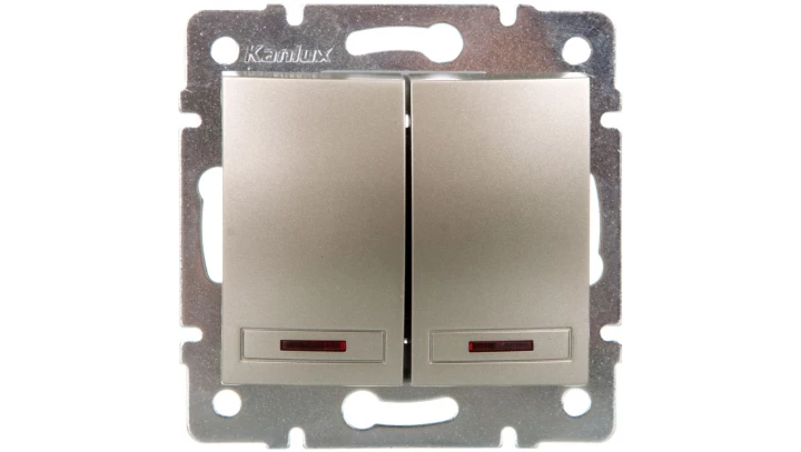 DOMO Łącznik dwugrupowy świecznikowy z LED szybkozłączka 10AX 250V szampański 011120250 25371