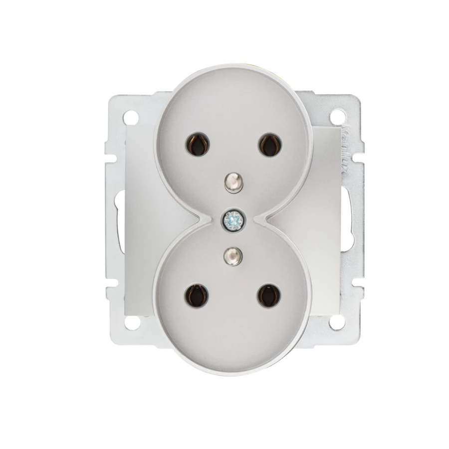 DOMO MODUŁ SREBRNY GNIAZDO 2X Z/U ZACISKI ŚRUBOWE 16A 250V 01-1253-143