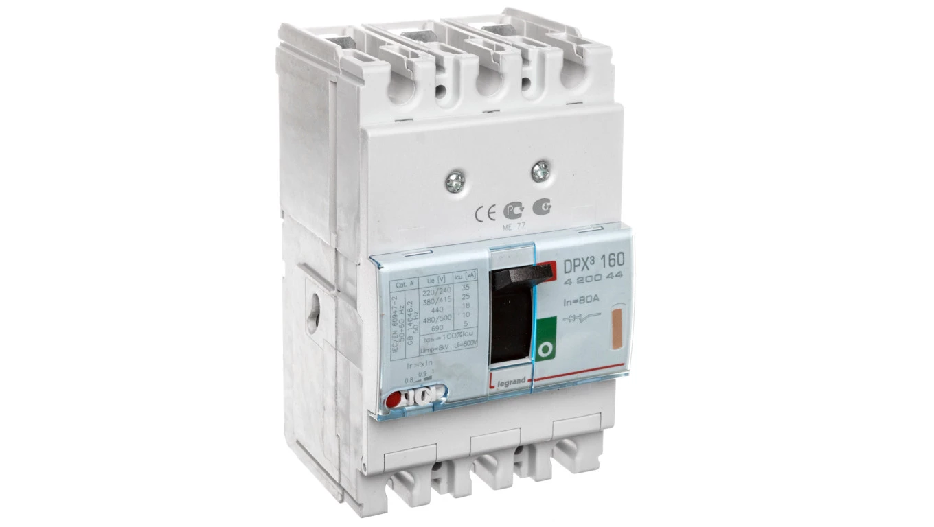 Wyłącznik mocy z wyzwalaczem termiczno-magnetycznym DPX3 160 3P 80A 25KA o numerze katalogowym 420044 w kategorii Wyłączniki i rozłączniki kompaktowe, Wyłączniki, rozłączniki. Produkt wyprodukowany przez markę LEGRAND, seria DPX31.