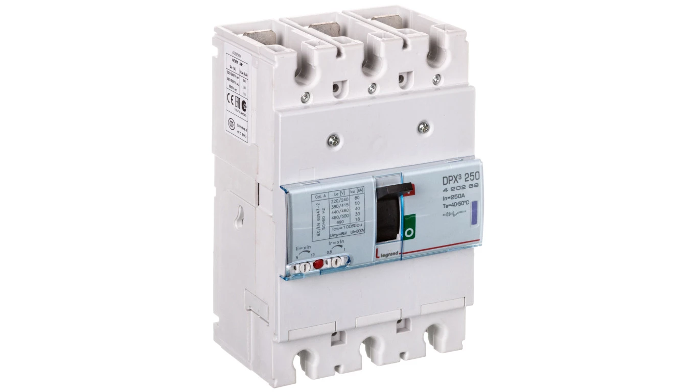Wyłacznik mocy z wyzwalaczem termiczno-magnetycznym DPX3 250 3P 250A 50KA o numerze katalogowym 420269 w kategorii Wyłączniki i rozłączniki kompaktowe, Wyłączniki, rozłączniki. Produkt wyprodukowany przez markę LEGRAND, seria DPX31.