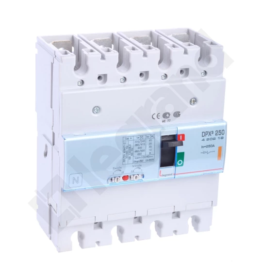 Wyłacznik mocy z wyzwalaczem termiczno-magnetycznym DPX3 250 4P 250A 25KA o numerze katalogowym 420219 w kategorii Wyłączniki i rozłączniki kompaktowe, Wyłączniki, rozłączniki. Produkt wyprodukowany przez markę LEGRAND, seria DPX31.