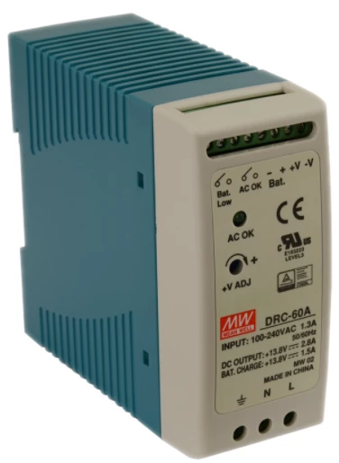 Zasilacz 60W 13.8V 4.3A, 13.8V 1.5A o numerze katalogowym DRC-60A w kategorii Zasilacze na szynę DIN, Zasilacze. Produkt wyprodukowany przez markę MEAN WELL, seria DRC.