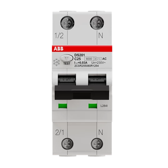 Wyłącznik różnicowo-nadprądowy, 1P+N, charakterystyka C, 25A, 6kA, 30mA, AC, bezzwłoczny DS201 C25 AC30 o numerze katalogowym   2CSR255080R1254 w kategorii Wyłączniki różnicowoprądowe nadprądowe>Wyłączniki różnicowoprądowe z członem nadprądowym typ AC. Produkt wyprodukowany przez markę ABB, seria DS201.