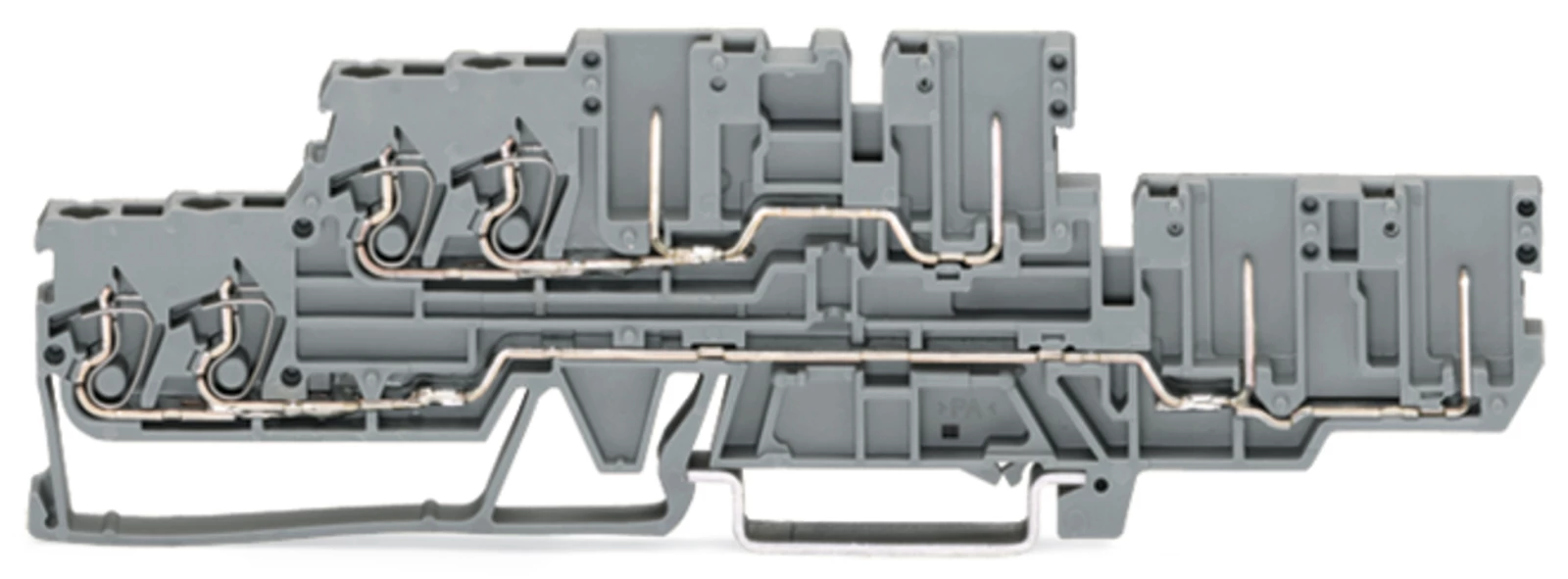 złączka bazowa 2-piętrowa 2-przewodowa/2-pinowa; złączka przelotowa/przelotowa; 2,5 mm²; L/L; na szynę TS 35 x 15 i 35 x 7,5; CAGE CLAMP®; 2,50 mm²; szary