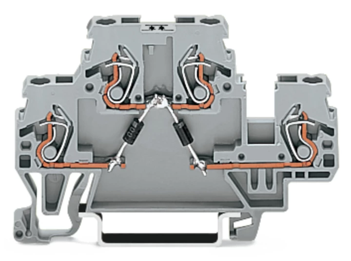 złączka do zabudowy elementów; 2-piętr.; z 2 diodami 1N4007; anody na dole; na szynę TS 35 x 15 i 35 x 7,5; 2,5 mm²; CAGE CLAMP®; szary