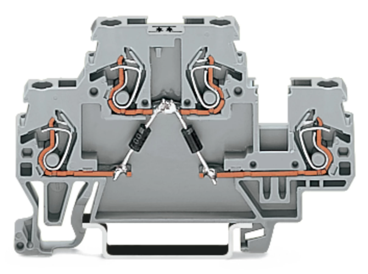 złączka do zabudowy elementów; 2-piętr.; z 2 diodami 1N4007; anody u góry; na szynę TS 35 x 15 i 35 x 7,5; 2,5 mm²; CAGE CLAMP®; szary