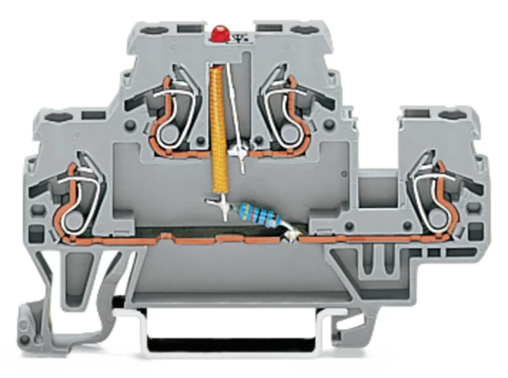 złączka do zabudowy elementów; 2-piętr.; LED czerwona; 24 V DC; na szynę TS 35 x 15 i 35 x 7,5; 2,5 mm²; CAGE CLAMP®; szary