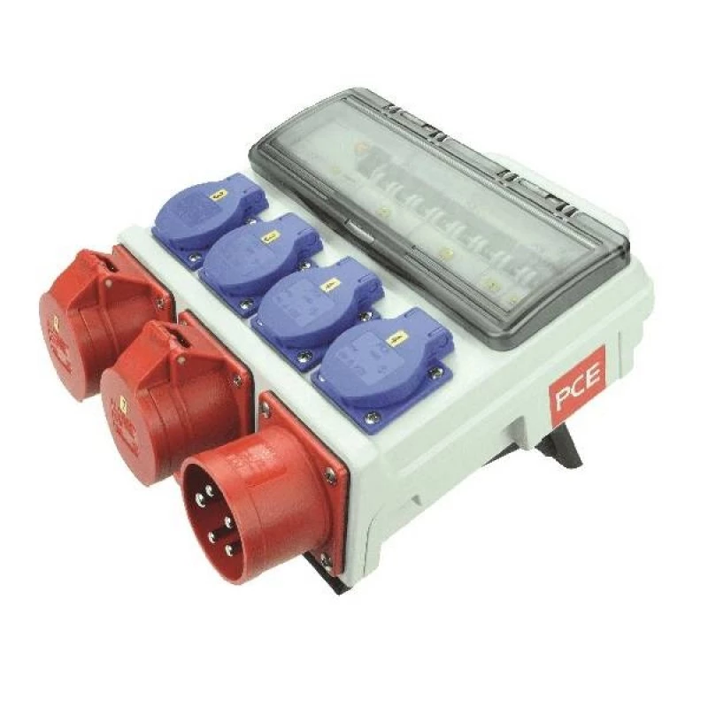 Rozdzielnica przenośna z tworzywa typ "Dzierżoniów" wejście 16/5 - wyjście 2x16/5 4xGSx2B16A 1P IP44 o numerze katalogowym 9004010W w kategorii Zestawy zasilające, Osprzęt przemysłowy-siłowy. Produkt wyprodukowany przez markę PCE, seria DZIERŻONIÓW.