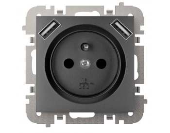 Vestra Gniazdo 2P+Z 2xUSB zasilające bez ramki podtynkowe IP20 czarny 3888-19