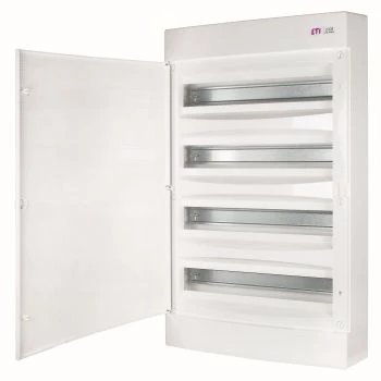 Obudowa natynkowa 4 rzędy po 18 mod. drzwi białe ECT 4X18PO-S o numerze katalogowym 001100321 w kategorii Tworzywowe natynkowe, Rozdzielnice i obudowy. Produkt wyprodukowany przez markę ETI.