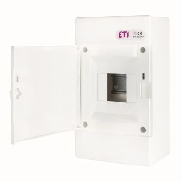 Obudowa natynkowa 1 rząd 4 mod. drzwi białe ECT4PO o numerze katalogowym 001100141 w kategorii Tworzywowe natynkowe, Rozdzielnice i obudowy. Produkt wyprodukowany przez markę ETI.