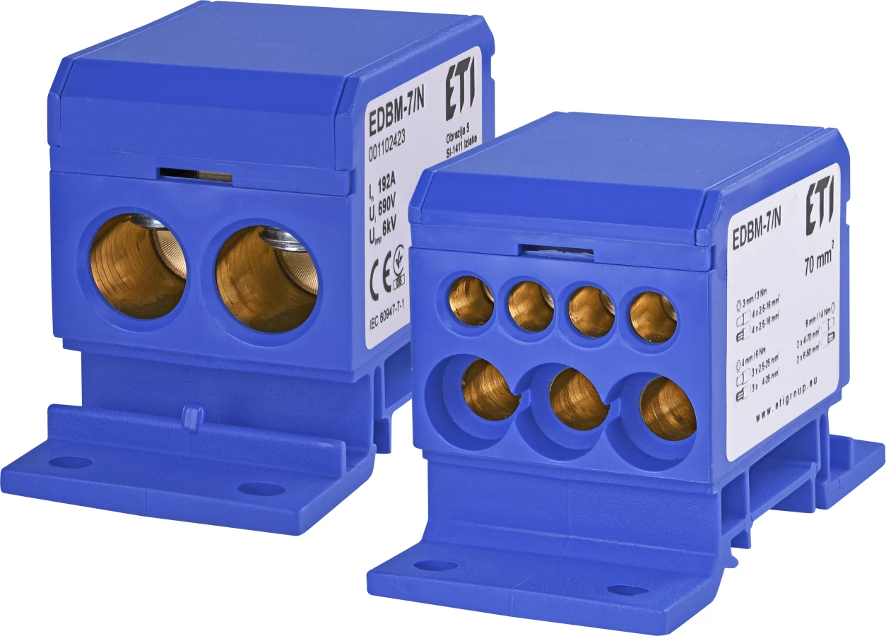 Blok rozdzielczy 192A (2x4-70mm2/3x2,5-25mm2+4x2,5-16mm2) niebieska EDBM-7/N o numerze katalogowym 001102423 w kategorii Bloki rozdzielcze, Wyposażenie i akcesoria. Produkt wyprodukowany przez markę ETI.