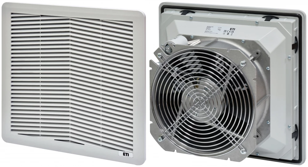 Wentylator filtrujący 457m3/h, 230V AC, 325x325, IP54 EF-325-457-230V o numerze katalogowym   001344016 w kategorii Wentylacja i klimatyzacja rozdzielni>Wentylatory do rozdzielnicy. Produkt wyprodukowany przez markę ETI, seria EF.