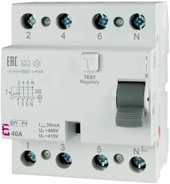 Wyłącznik różnicowoprądowy EFI-P4 A 16/0.1 o numerze katalogowym 002061520 w kategorii Wyłączniki różnicowoprądowe typ A, Wyłączniki różnicowoprądowe. Produkt wyprodukowany przez markę ETI.