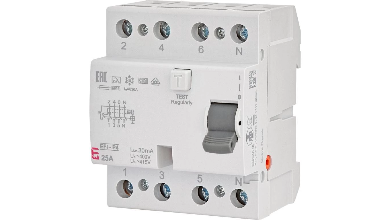 EFI6-P4 25A/ 30MA/A WYŁĄCZNIK RÓŻNICOWY 25A 4P 4M 30MA A 6KA