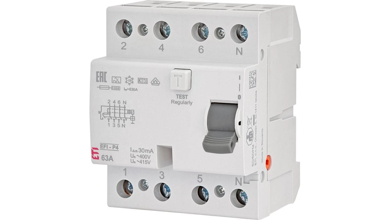 EFI6-P4 63A/ 30MA/A WYŁĄCZNIK RÓŻNICOWY 63A 4P 4M 30MA/A 6KA