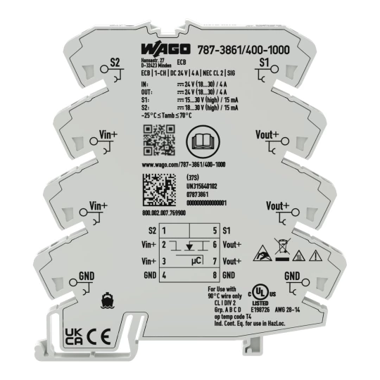 elektroniczny wyłącznik nadprądowy; 1-kanałowy; napięcie wejściowe 24 V DC; 4 A; NEC Class 2; zestyk sygnalizacyjny